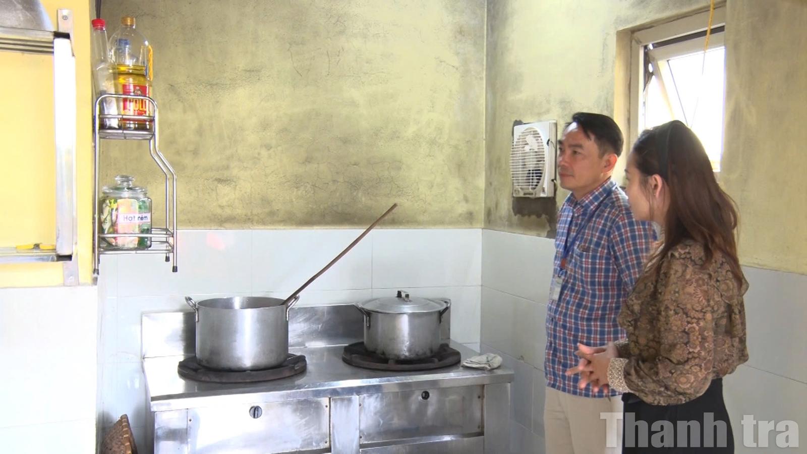 Cán bộ Chi cục Vệ sinh An toàn thực phẩm kiểm tra bếp ăn của các đơn vị trên địa bàn tỉnh Thanh Hoá. Ảnh: Văn Thanh