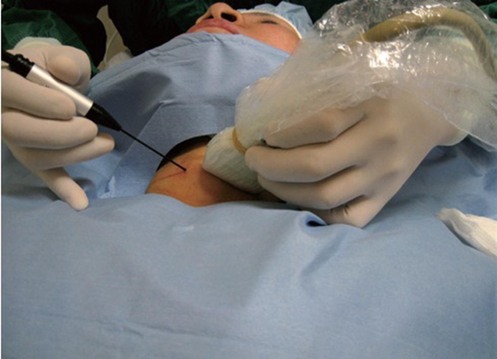 Khám với bác sĩ Phạm Thị Hồng Hoa (khoa Nội tổng hợp, Bệnh viện Đa khoa Quốc tế Vinmec Times City), chị Na được chỉ định đốt sóng cao tần nhằm diệt các tế bào và mạch máu trong khối u tuyến giáp. Đây chỉ là thủ thuật can thiệp không cần phẫu thuật, đường chọc kim chỉ 3mm cho phép loại bỏ hoàn toàn bướu giáp nhân mà vẫn giữ được chức năng tuyến giáp và thẩm mỹ như mong muốn.