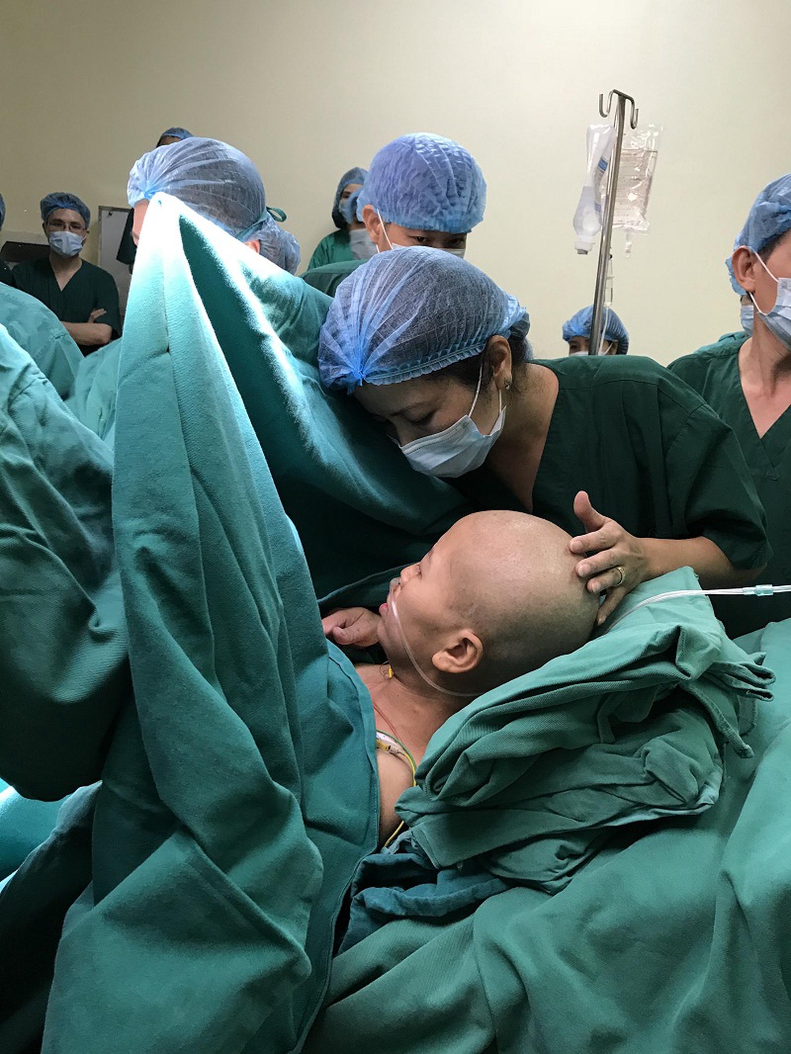 Các bác sĩ nhận thấy sức chịu đựng của người mẹ đã đến giới hạn, nguy hiểm đến tính mạng của cả mẹ và con nên ngày 22/5, các bác sĩ Bệnh viện K đã phối hợp với Bệnh viện Phụ sản Trung ương hỗ trợ mổ sinh.