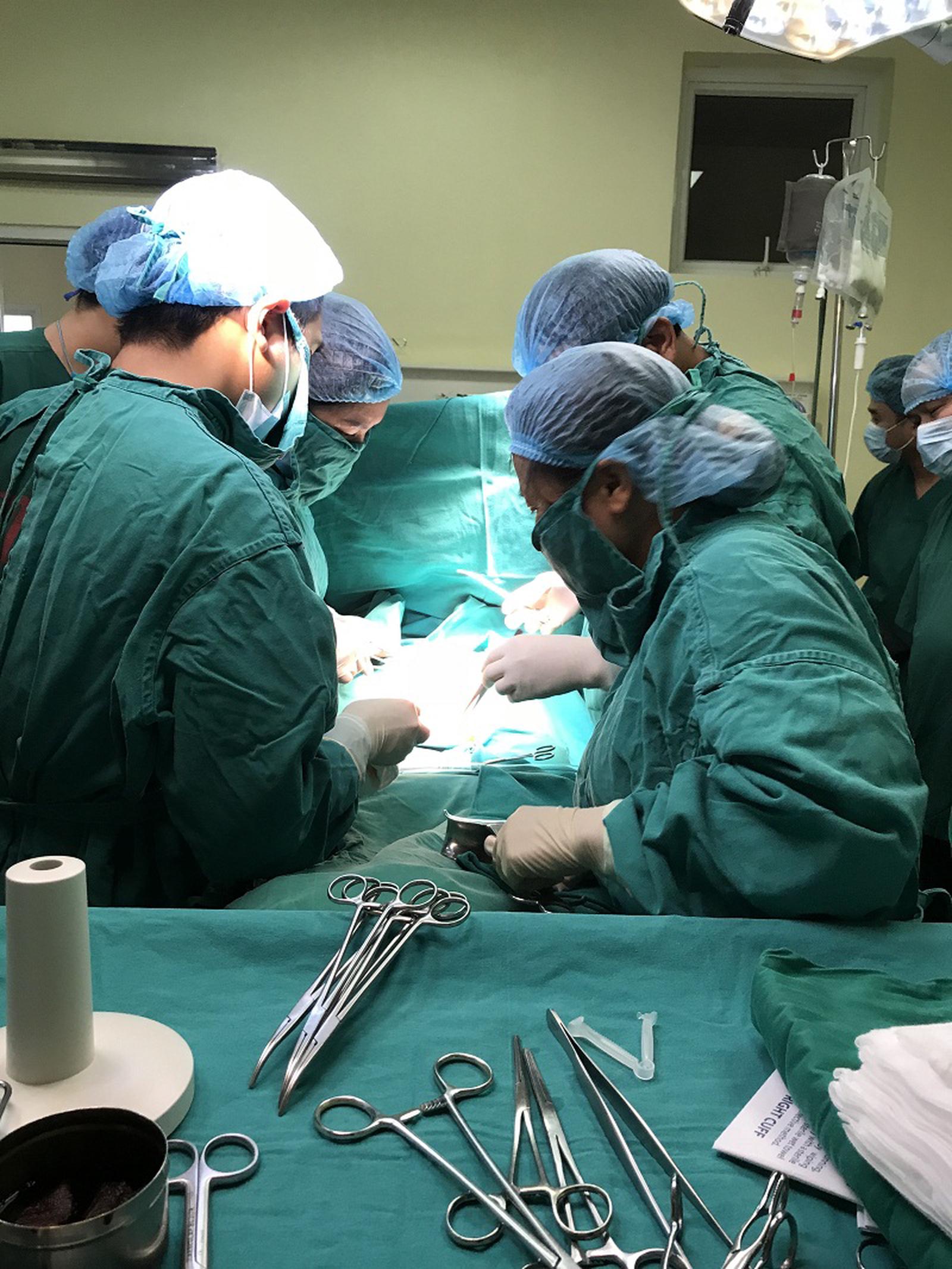 Trong khi mổ thai phụ không thể nằm nên các bác sĩ phải mổ cho cô ở tư thế ngồi - đây là tư thế khó để thực hiện mổ sinh, bệnh nhân suy yếu nên các thao tác mổ phải đảm bảo nhanh, chính xác.