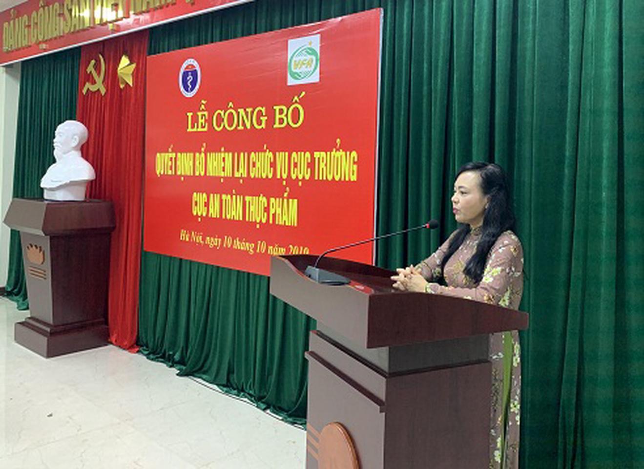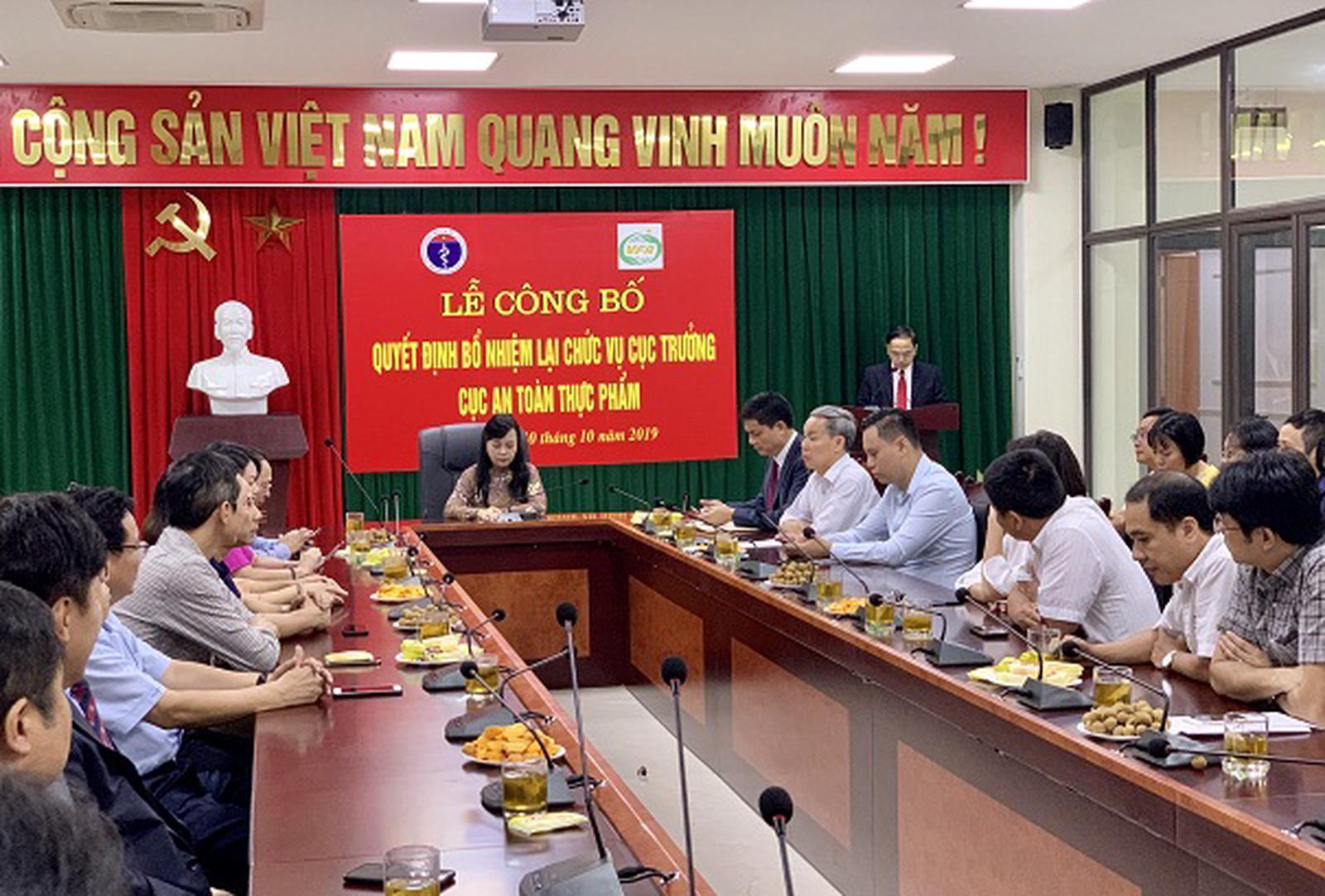 Phát biểu chỉ đạo tại lễ công bố quyết định bổ nhiệm lại chức vụ Cục trưởng Cục ATTP, PGS.TS Nguyễn Thị Kim Tiến đánh giá cao những thành tích đã đạt được của PGS.TS Nguyễn Thanh Phong trong nhiệm kỳ 5 năm vừa qua (2015- 2019).