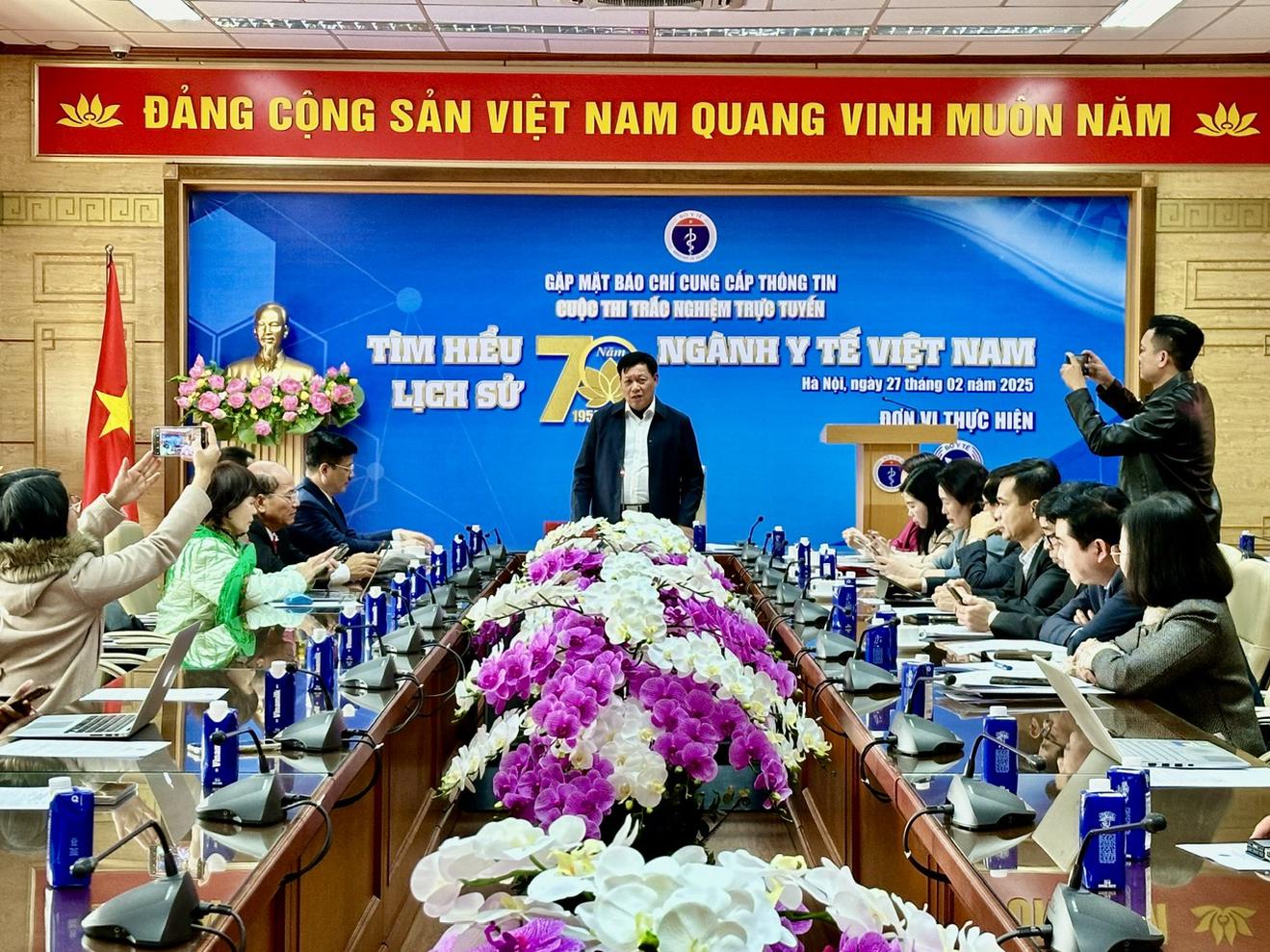 Thông tin tại buổi họp báo, Thứ trưởng Đỗ Xuân Tuyên cho biết, cuộc thi trắc nghiệm trực tuyến tìm hiểu lịch sử 70 năm ngành Y tế Việt Nam là dịp để ôn lại truyền thống vẻ vang về quá trình lịch sử 70 năm xây dựng và phát triển của ngành Y tế Việt Nam.