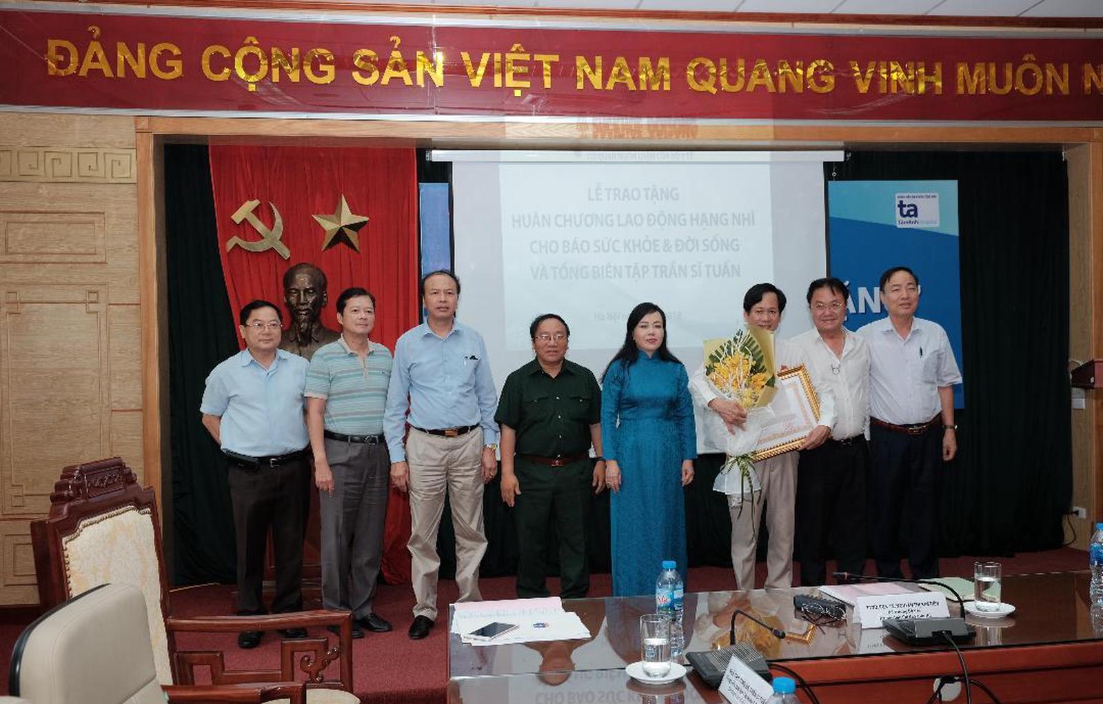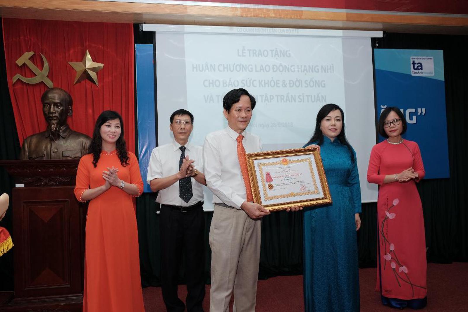 Thừa ủy quyền của Chủ tịch nước, Bộ trưởng Bộ Y tế Nguyễn Thị Kim Tiến trao Huân chương Lao động hạng Nhì cho tập thể Báo Sức khỏe và Đời sống và bác sĩ Trần Sĩ Tuấn, Tổng Biên tập