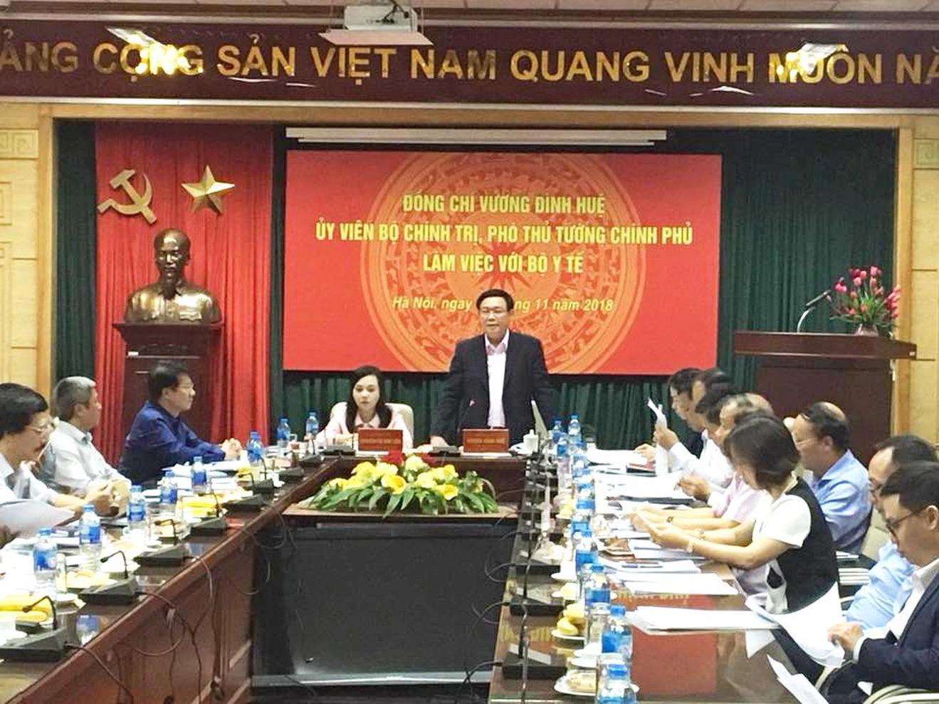 Phát biểu chỉ đạo tại buổi làm việc, Phó Thủ tướng Vương Đình Huệ đánh giá cao kết quả đạt được của Bộ Y tế trong thực hiện cơ chế một cửa, cắt giảm điều kiện kinh doanh, tạo thuận lợi cho các doanh nghiệp.