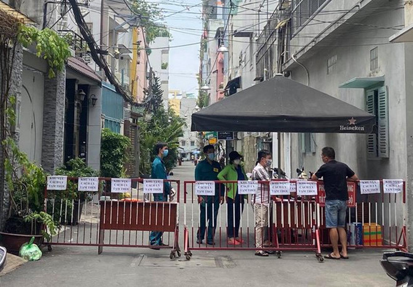 Hẻm 395 trên đường Lê Văn Sỹ đang bị phong tỏa vì có ca tái dương tính Covid - 19. Ảnh: NQ