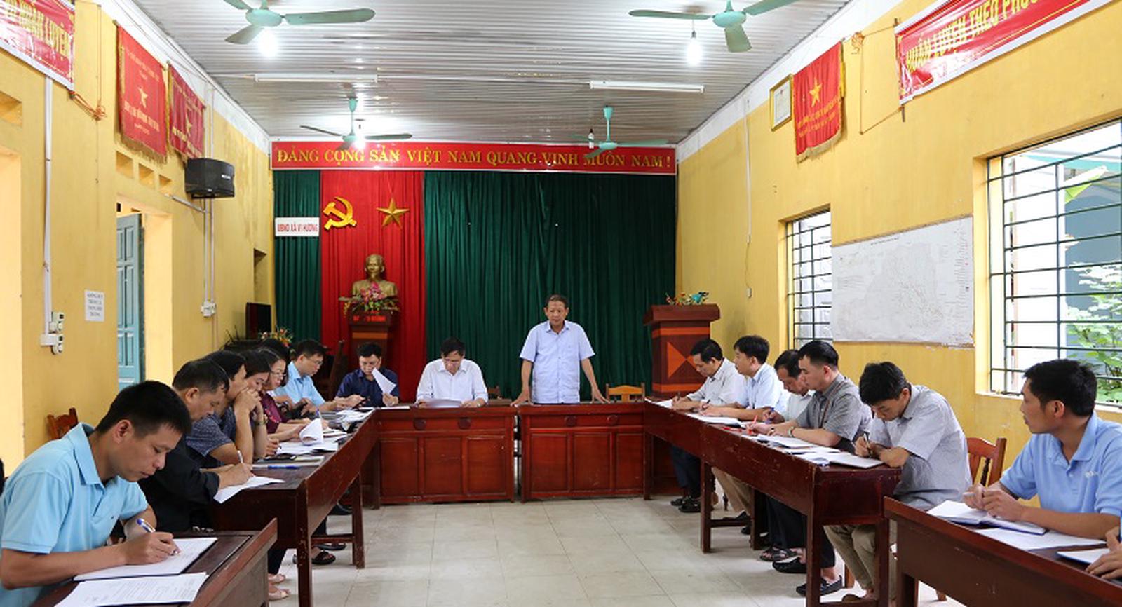 Đoàn công tác tỉnh Bắc Kạn làm việc với UBND huyện Bạch Thông về tình hình bệnh dịch lợn tả châu Phi. Ảnh: TH