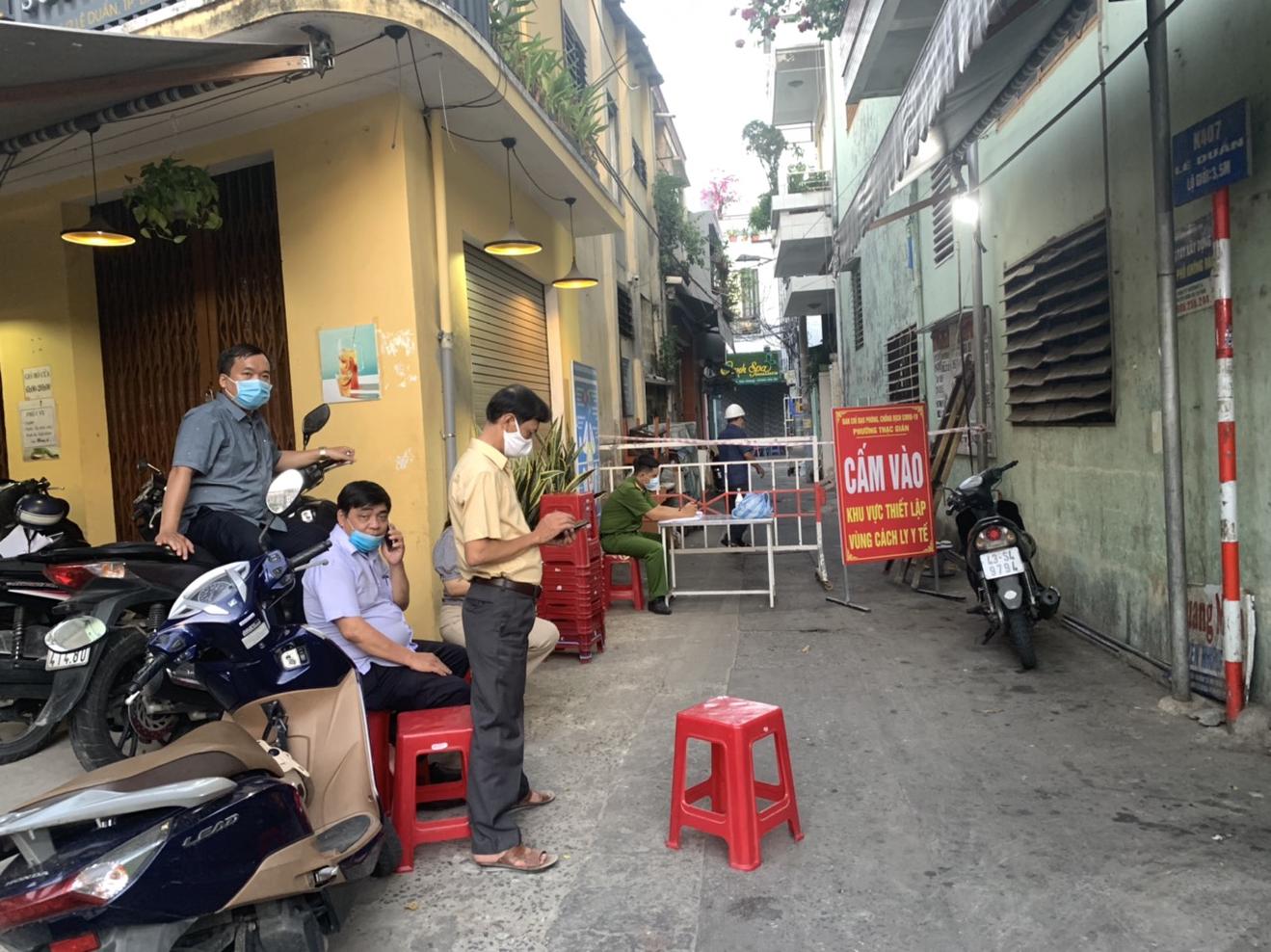 Phong tỏa y tế khu phố nơi xuất hiện ca dương tính (BN 12437). Ảnh: T.P