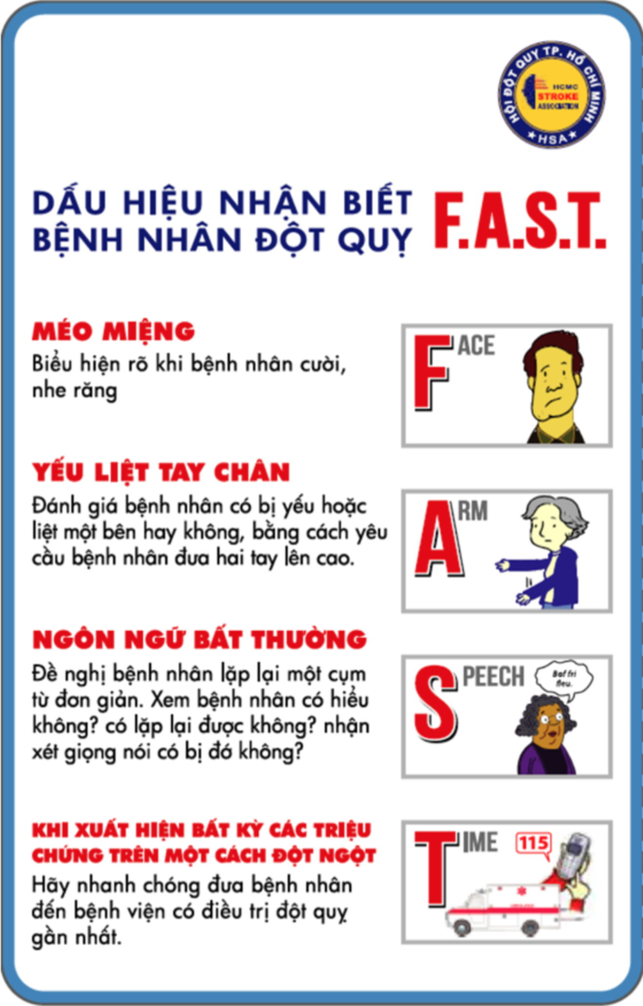 Dấu hiệu nhận biết đột quỵ. Ảnh: Sở Y tế