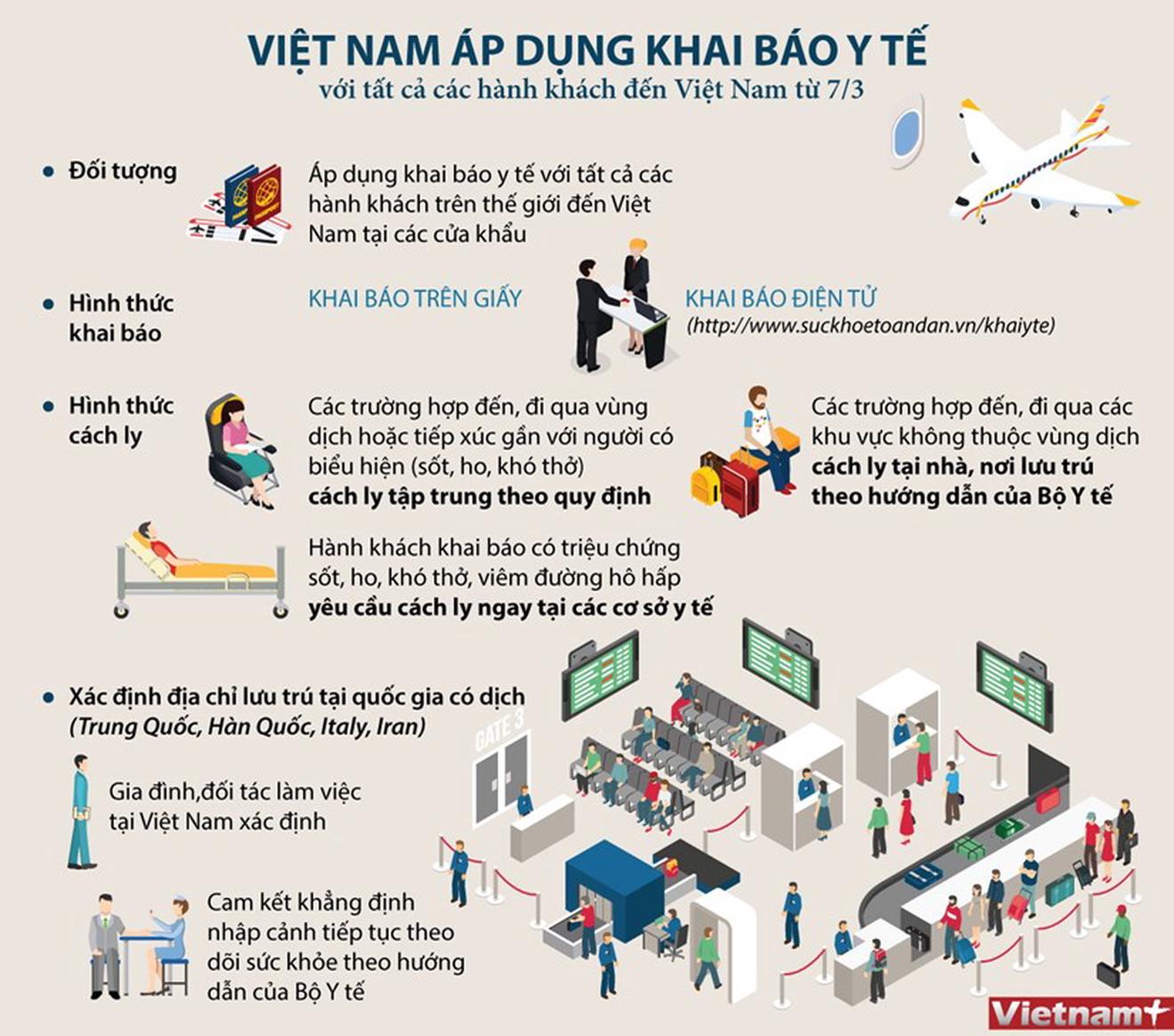 Việt Nam đã áp dụng khai báo y tế đối với tất cả các hành khách trên thế giới đến Việt Nam tại các cửa khẩu từ ngày 7/3.