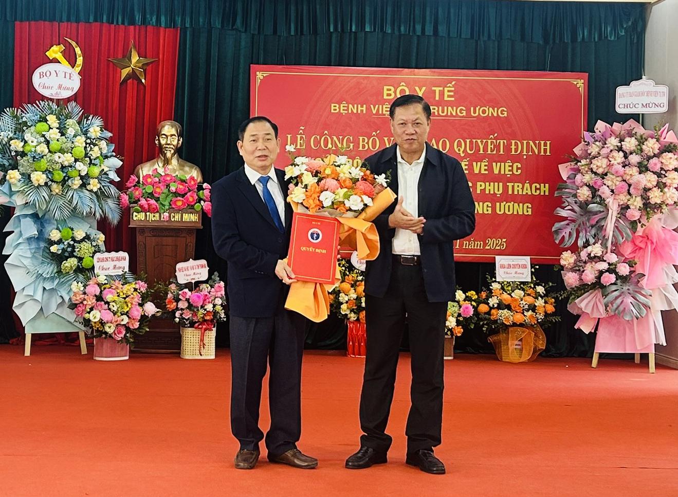 Thứ trưởng Bộ Y tế Đỗ Xuân Tuyên, trao quyết định cho Phó Giám đốc Bệnh viện 71 Trung ương tại phường Quảng Phú, tỉnh Thanh Hoá. Ảnh: Hương Trà