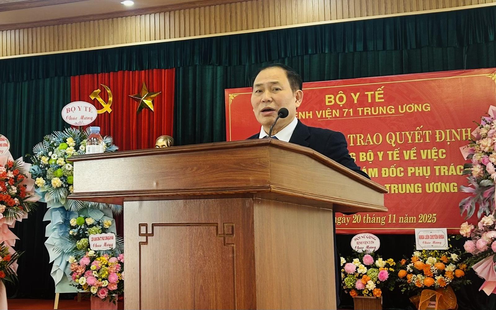 Phát biểu nhận nhiệm vụ, bác sĩ Lê Ngọc Trường – Phó Giám đốc Bệnh viện 71 Trung ương bày tỏ vinh dự khi được tín nhiệm giao trọng trách, đồng thời cam kết sẽ không ngừng nỗ lực, giữ vững y đức, phát huy năng lực chuyên môn và tinh thần cống hiến.