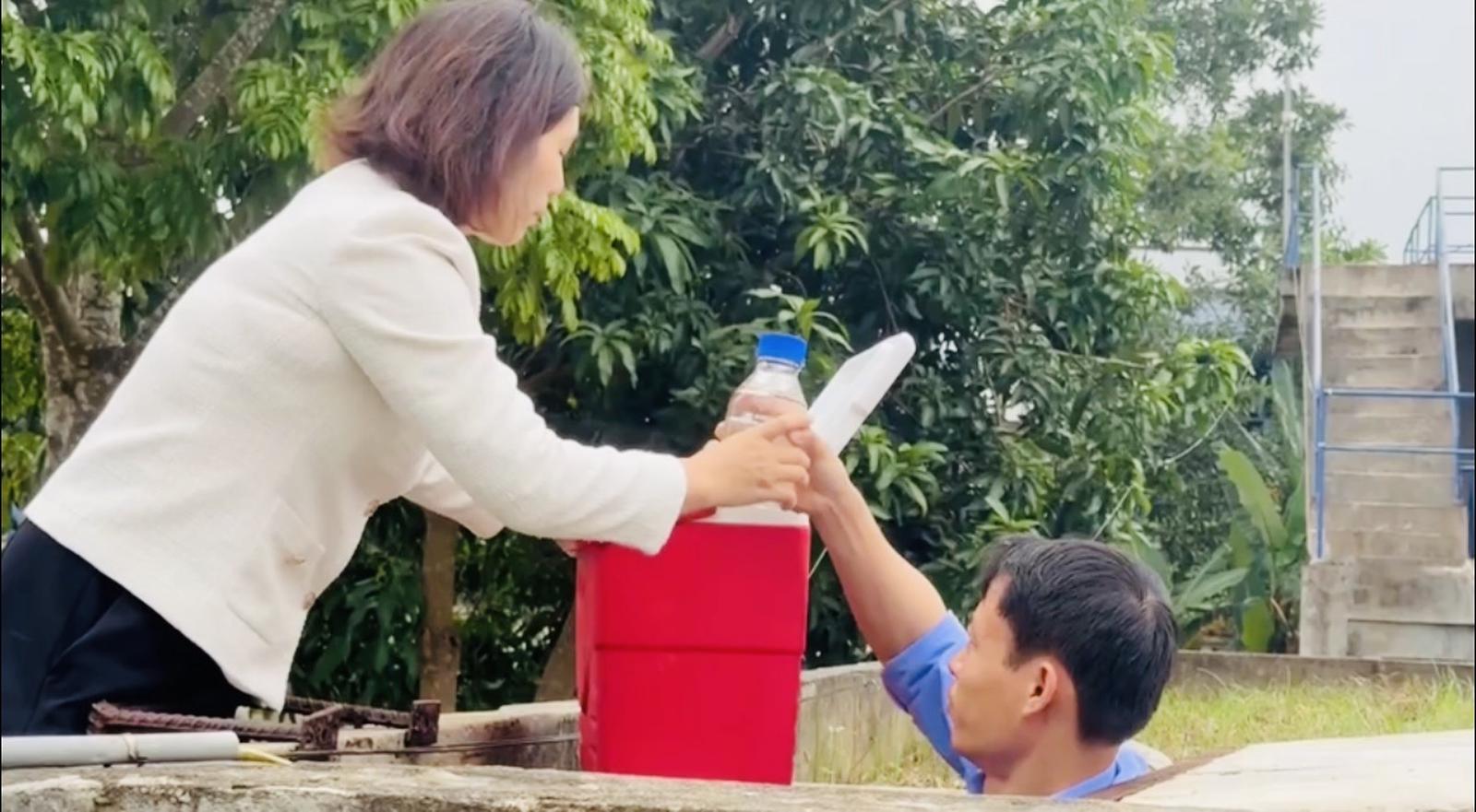 Đoàn cũng đã lấy mẫu nước tại Chi nhánh cấp nước Nông Cống, tỉnh Thanh Hoá để xét nghiệm, đánh giá chất lượng nguồn nước sinh hoạt.