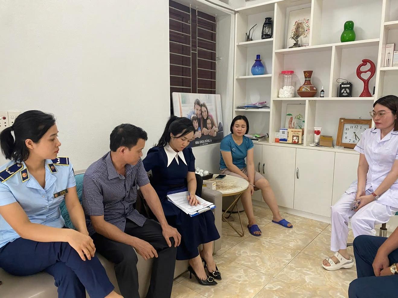 Cơ quan chức năng kiểm tra tại Phòng khám Nha khoa Đông Á ở địa chỉ 133 đường Nguyễn Đình Ngân, phường Long Anh, TP Thanh Hoá. Ảnh: Cơ quan chức năng cung cấp
