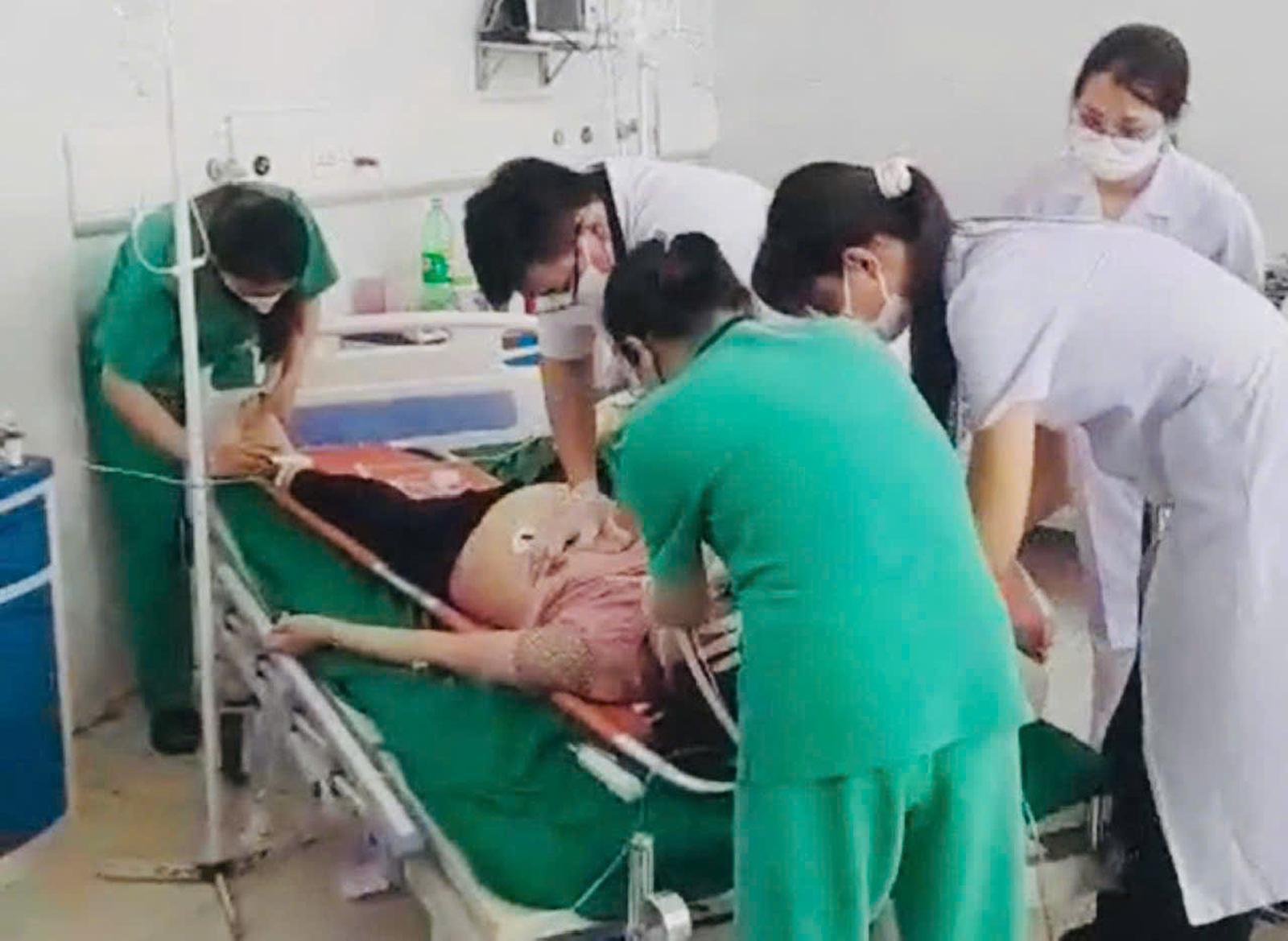 Bệnh nhân được cấp cứu tại Bệnh viện Đa khoa Medic Hải Tiến. Ảnh: cắt từ clip
