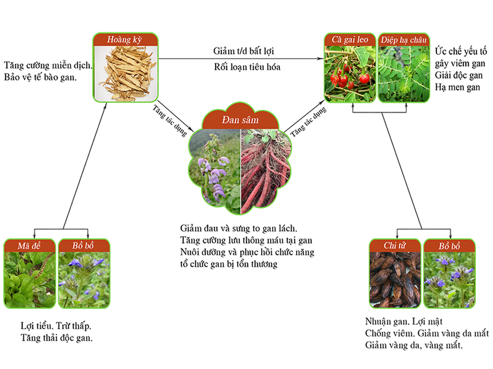 Tăng cường lưu thông máu tại gan và nuôi dưỡng chức năng gan: Trong viêm gan siêu vi B, C, các tổ chức gan bị ảnh hưởng làm cho máu hạn chế lưu thông nên các tổ chức gan không được nuôi dưỡng, hồi phục và các thành phần kháng virus hạn chế đến để ức chế virus. Vì vậy cần tăng cương lưu thông máu tại gan giúp nhanh trong quá trình điều trị và hồi phục nhanh tế bào gan tổn thương.