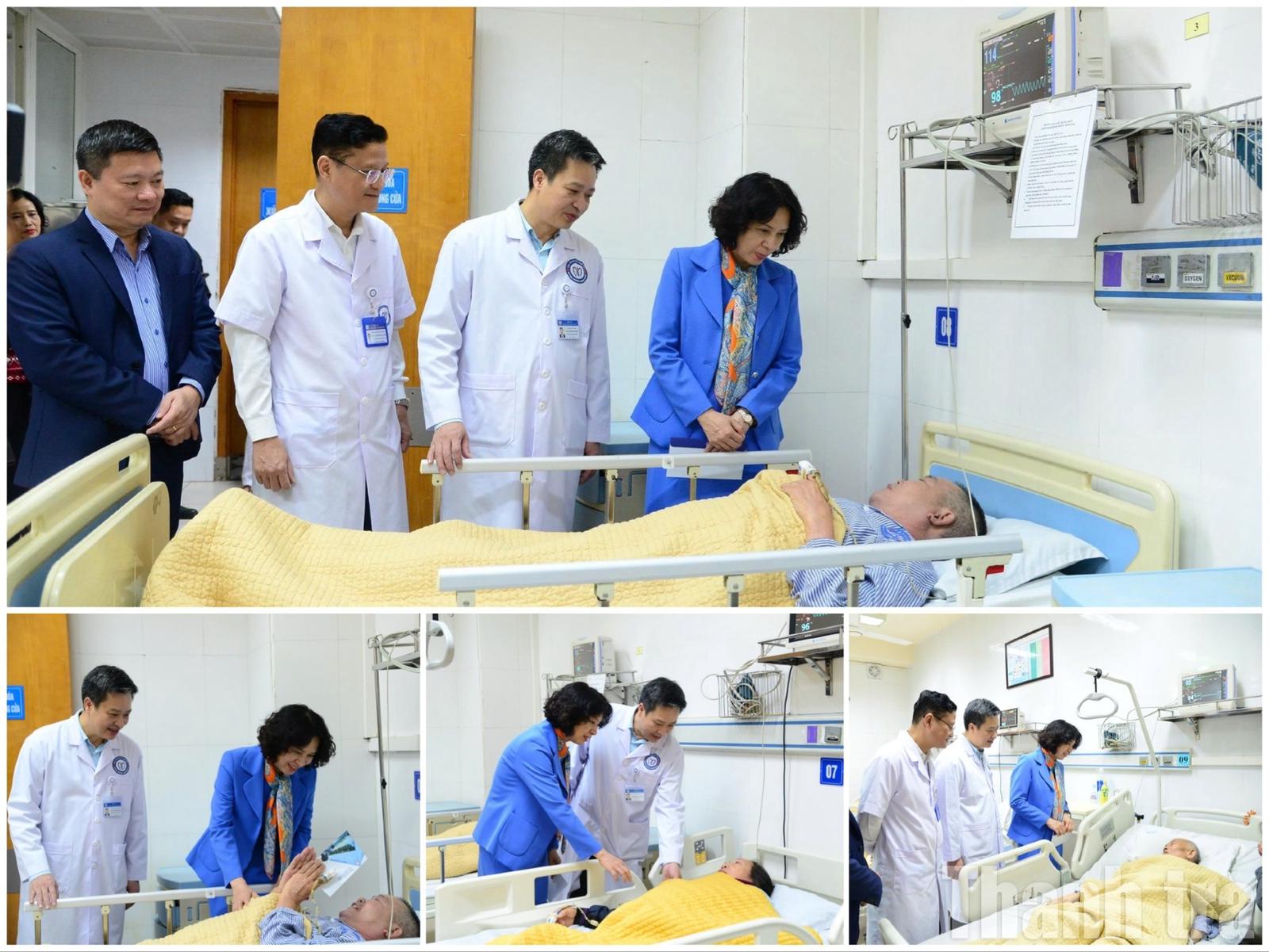 Thứ trưởng Nguyễn Thị Liên Hương đã đến từng giường bệnh tại Khoa Điều trị tích cực, trực tiếp thăm hỏi, tặng quà và động viên người bệnh đang điều trị. Ảnh: T.L