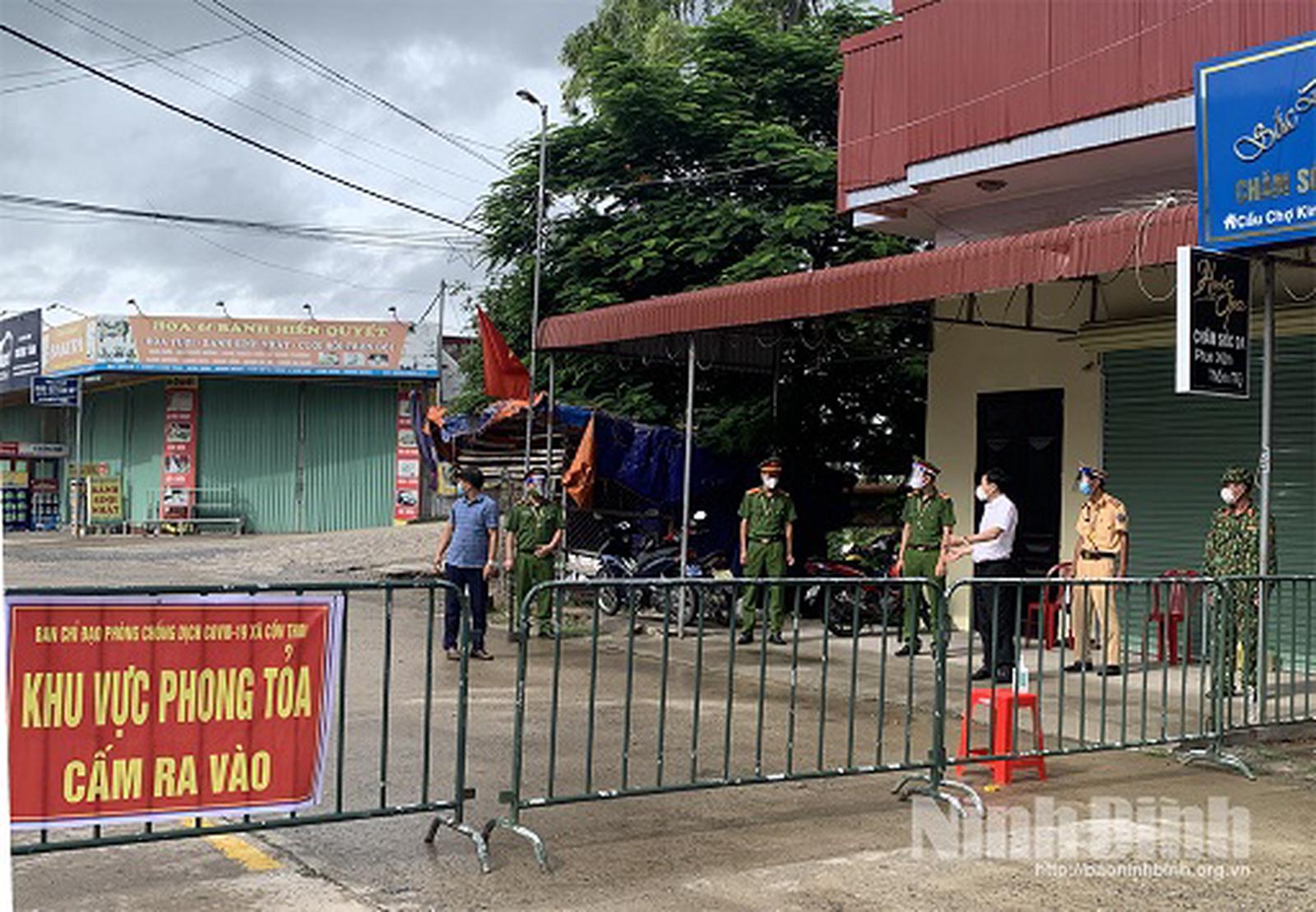 Cơ quan chức năng huyện Kim Sơn thiết lập các khu phong tỏa. Ảnh: Báo Ninh Bình