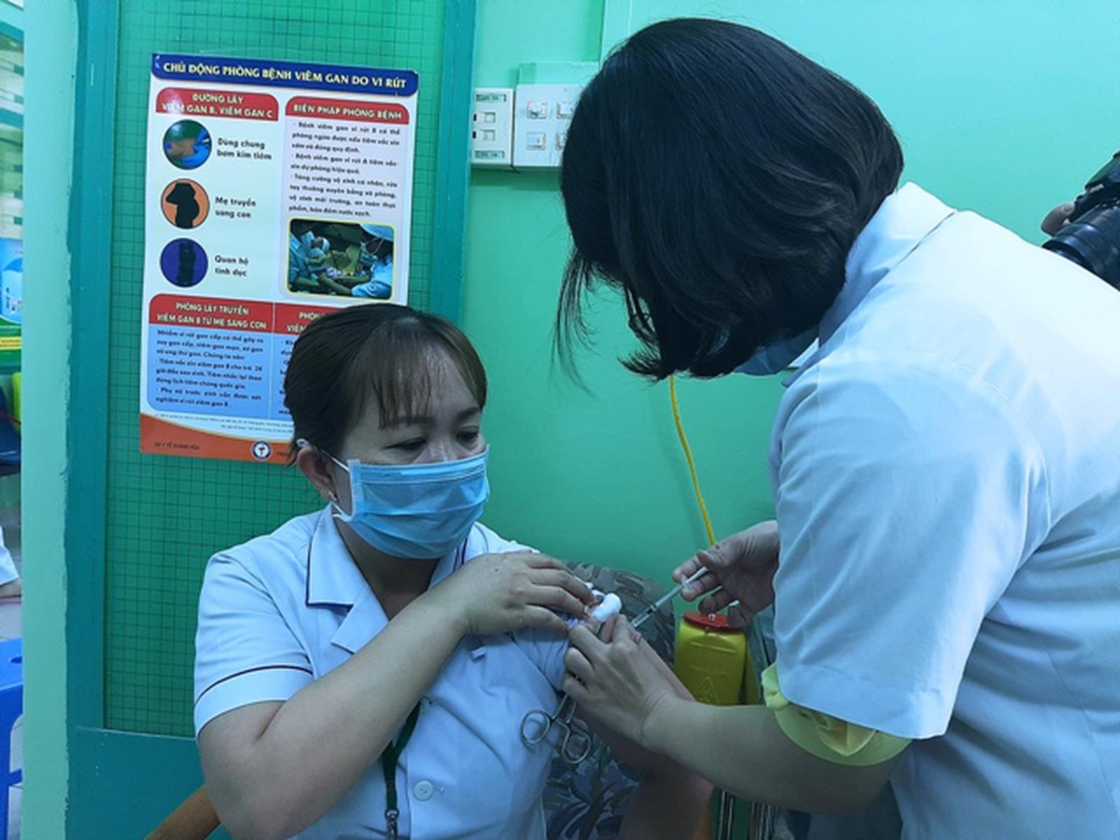 Tiêm vắc xin cho đội ngũ y, bác sỹ trên tuyến đầu chống dịch Covid-19. Ảnh: Thanh Hòa