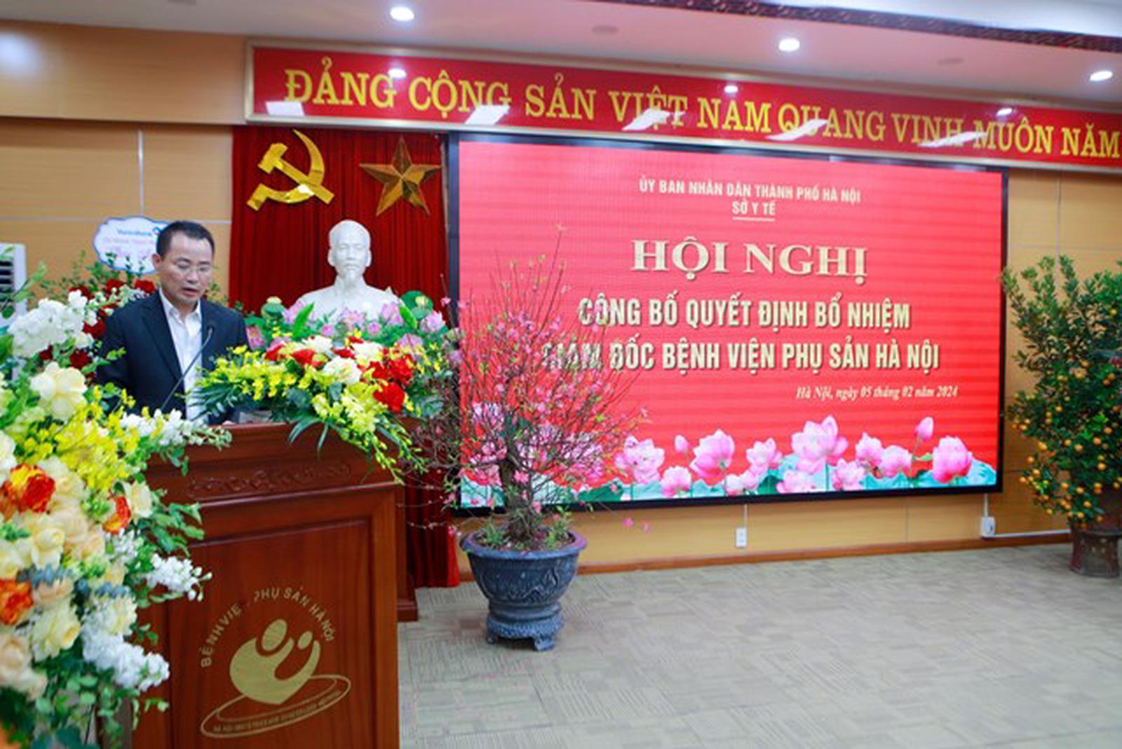 Tại buổi lễ, bà Trần Hồng Hà - Trưởng phòng Tổ chức Cán bộ Sở Y tế đã công bố Quyết định số 296/QĐ-SYT ngày 02/02/2024 của Sở Y tế Hà Nội bổ nhiệm TS. BSCKII Mai Trọng Hưng - Phó Giám đốc Bệnh viện Phụ Sản Hà Nội giữ chức vụ Giám đốc Bệnh viện Phụ Sản Hà Nội trực thuộc Sở Y tế Hà Nội, thời hạn giữ chức vụ là 05 năm.