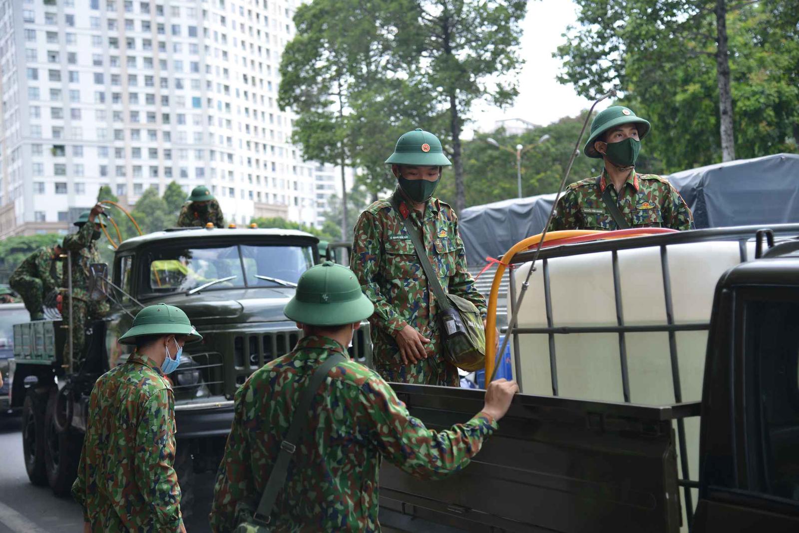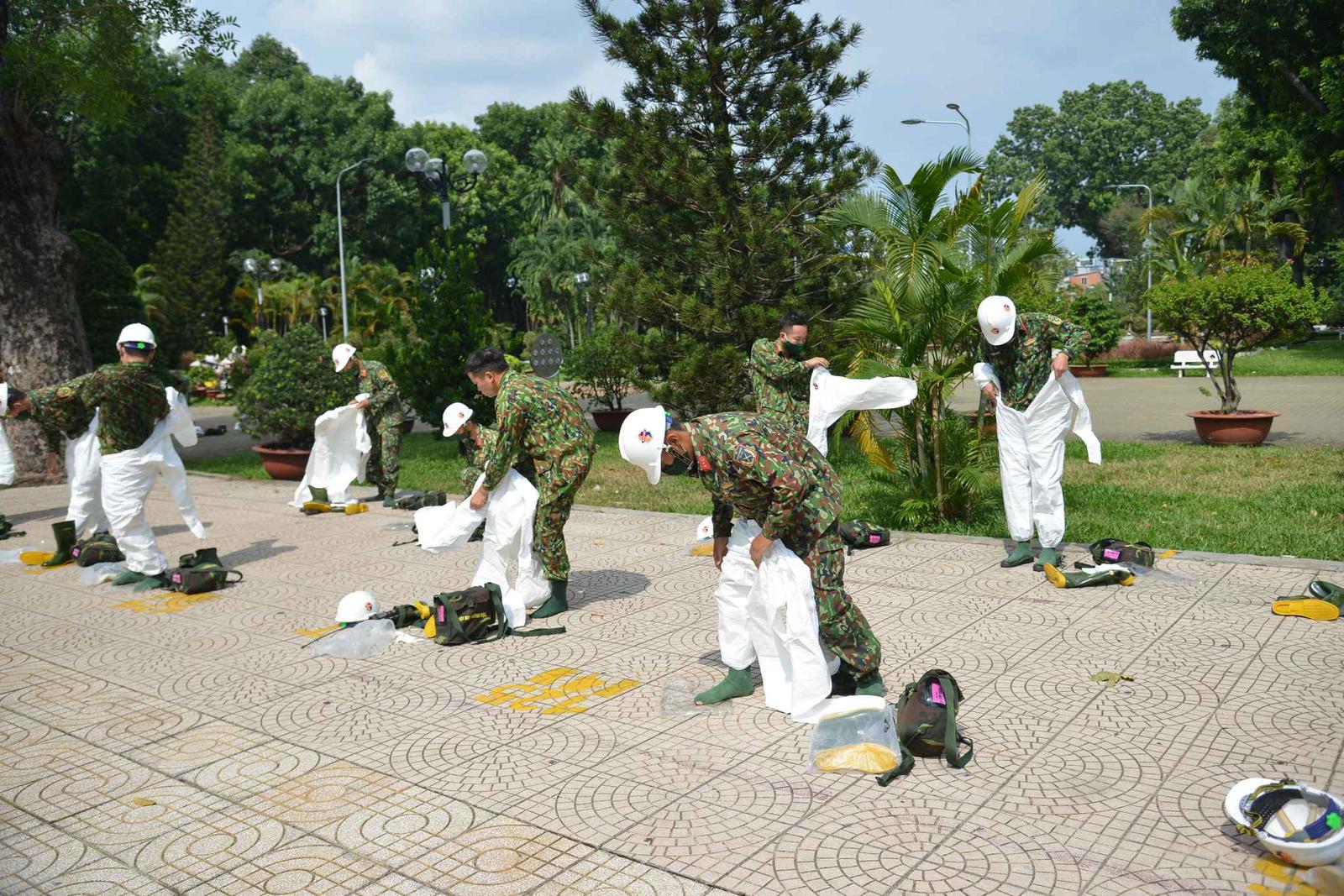 14 giờ chiều cùng ngày, đoàn xe Trung tâm Ứng cứu sự cố hóa học, sinh học, phóng xạ hạt nhân thuộc Binh chủng Hóa học (Bộ Quốc phòng) đã tập trung ở khu vực công viên Gia Định (quận Gò Vấp) để triển khai đội hình, phân công nhiệm vụ, mặc trang bị bảo hộ, kiểm tra hệ thống bơm, áp suất nén...