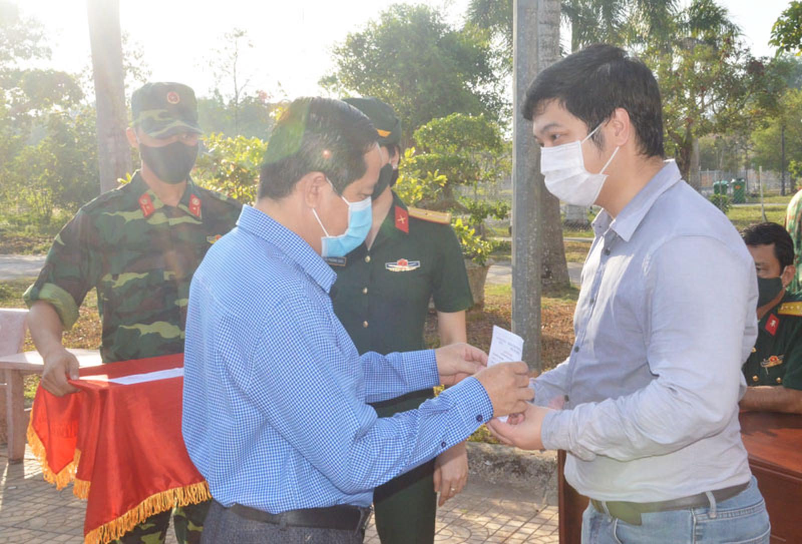 Trao giấy chứng nhận hoàn thành thời gian cách ly cho công dân. Ảnh: XC