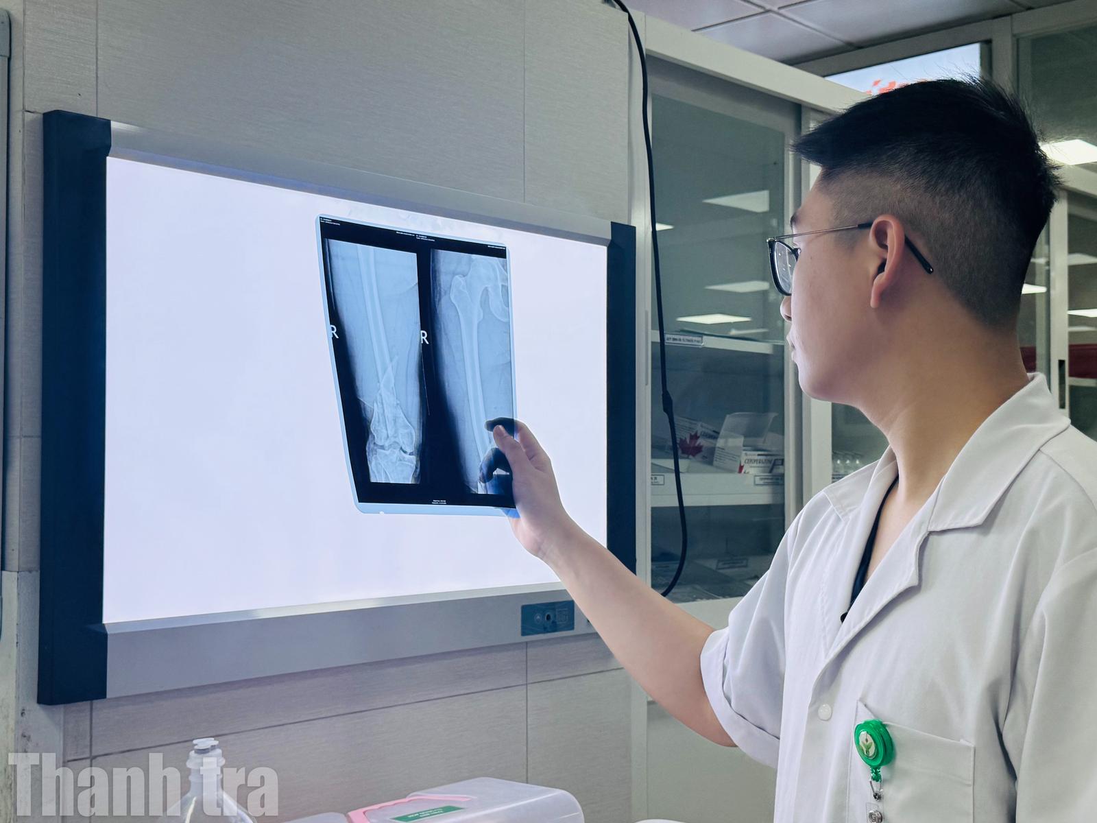Bác sĩ Khoa Khám bệnh - Cấp cứu, Bệnh viện Hữu nghị Việt Đức xem hình ảnh chẩn đoán cho bệnh nhân. Ảnh: Thanh Lương