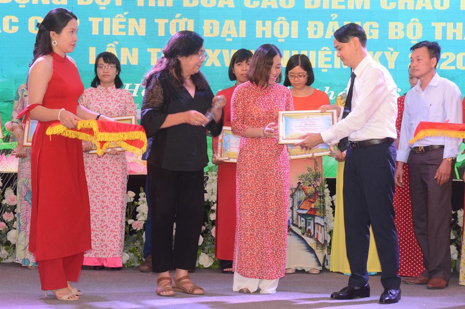 Lãnh đạo Công đoàn ngành Y tế Hà Nội trao tặng Giấy công nhận, Cúp danh hiệu. Ảnh: Thùy An