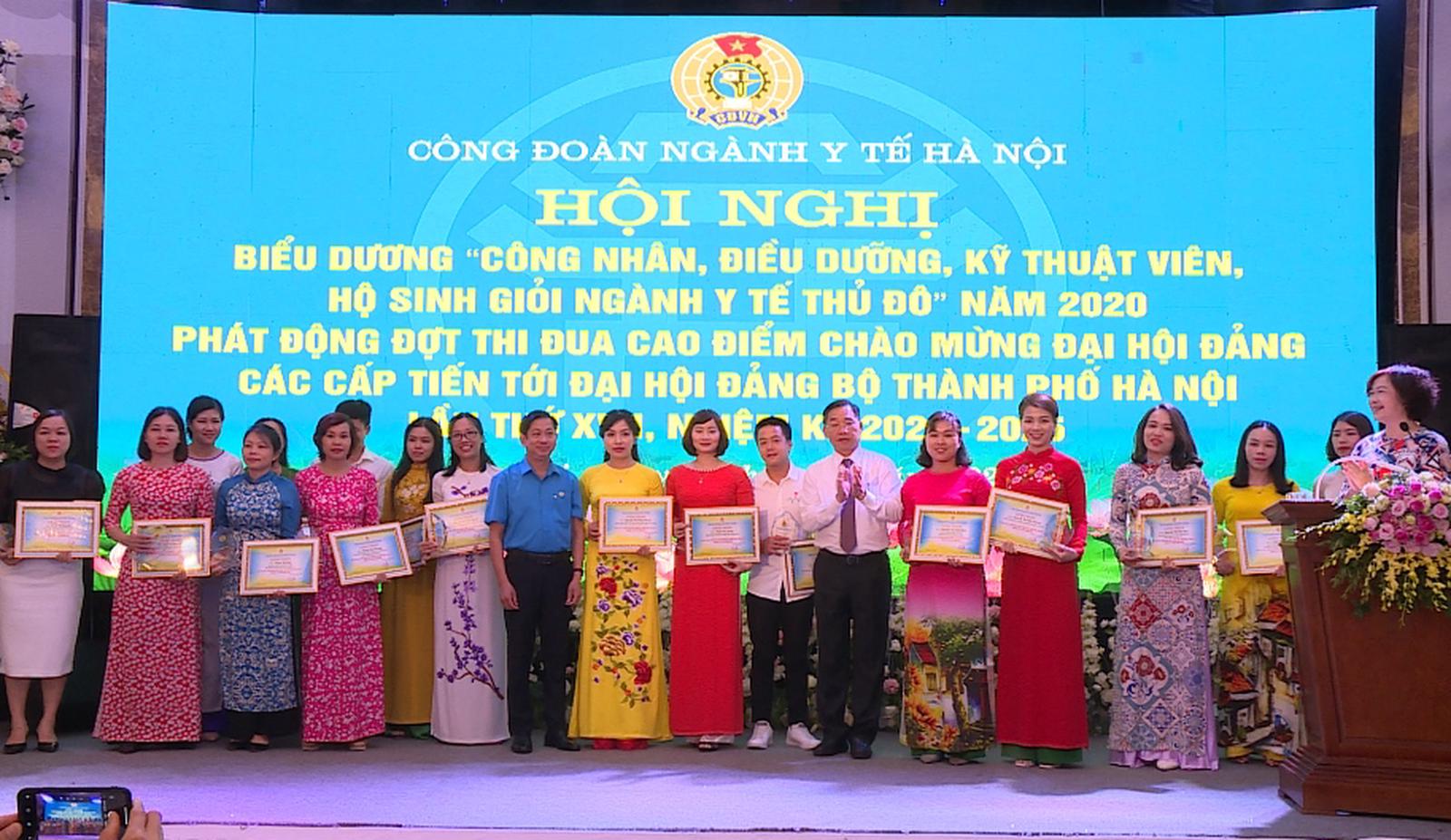 (Thanh tra)- Công đoàn ngành Y tế Hà Nội vừa tổ chức biểu dương 96 công nhân, điều dưỡng, kỹ thuật viên, hộ sinh giỏi năm 2020 và phát động đợt thi đua cao điểm chào mừng Đại hội Đảng các cấp tiến tới Đại hội Đảng bộ TP Hà Nội lần thứ XVII, nhiệm kỳ 2020 - 2025.