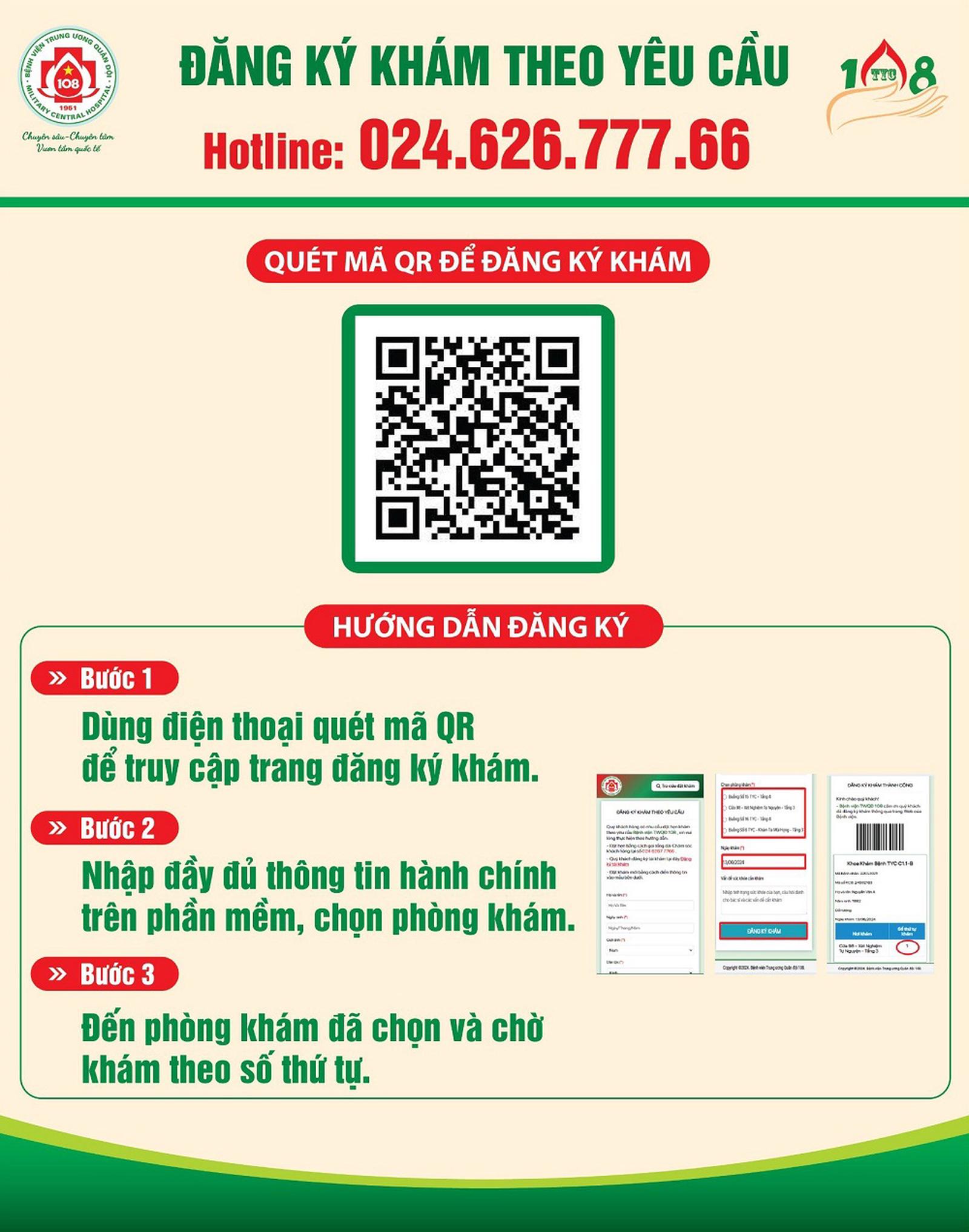 Hướng dẫn quét mã QR để đăng ký khám tại bệnh viện 108. Ảnh: BV