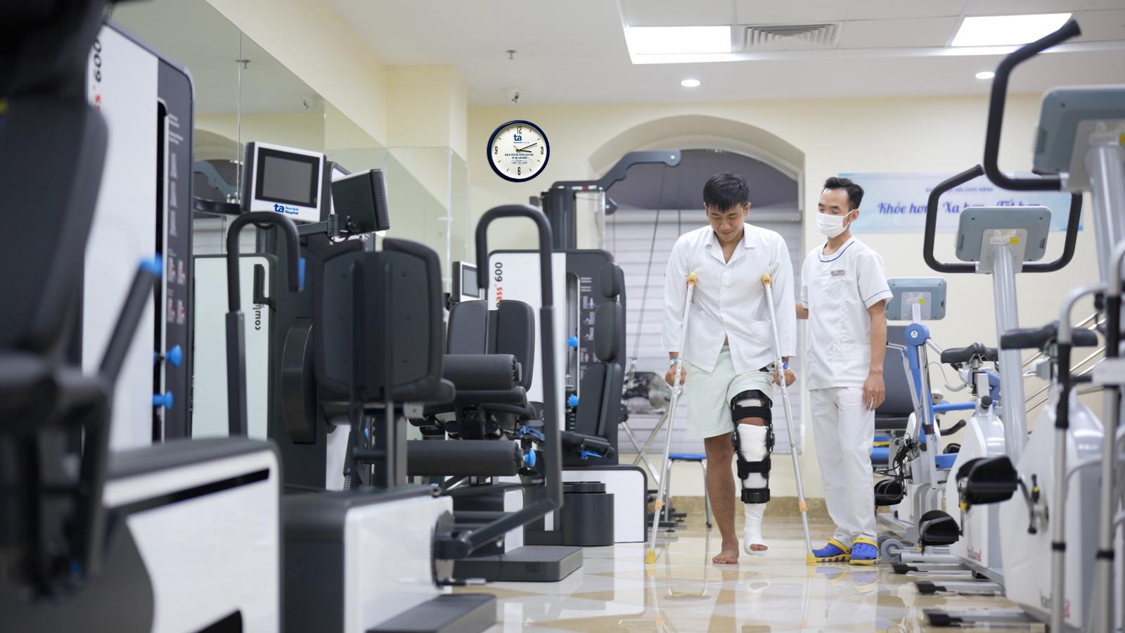 Sau khi hồi phục, rời khỏi ICU, người bệnh tiếp tục được tập phục hồi chức năng, vật lý trị liệu với các chương trình tập luyện cá nhân hóa và các thiết bị chuyên dụng. Bác sĩ sẽ theo sát quá trình tập luyện và phục hồi của bệnh nhân, thay đổi kịp thời giúp bênh nhân đạt hiệu quả cao nhất.