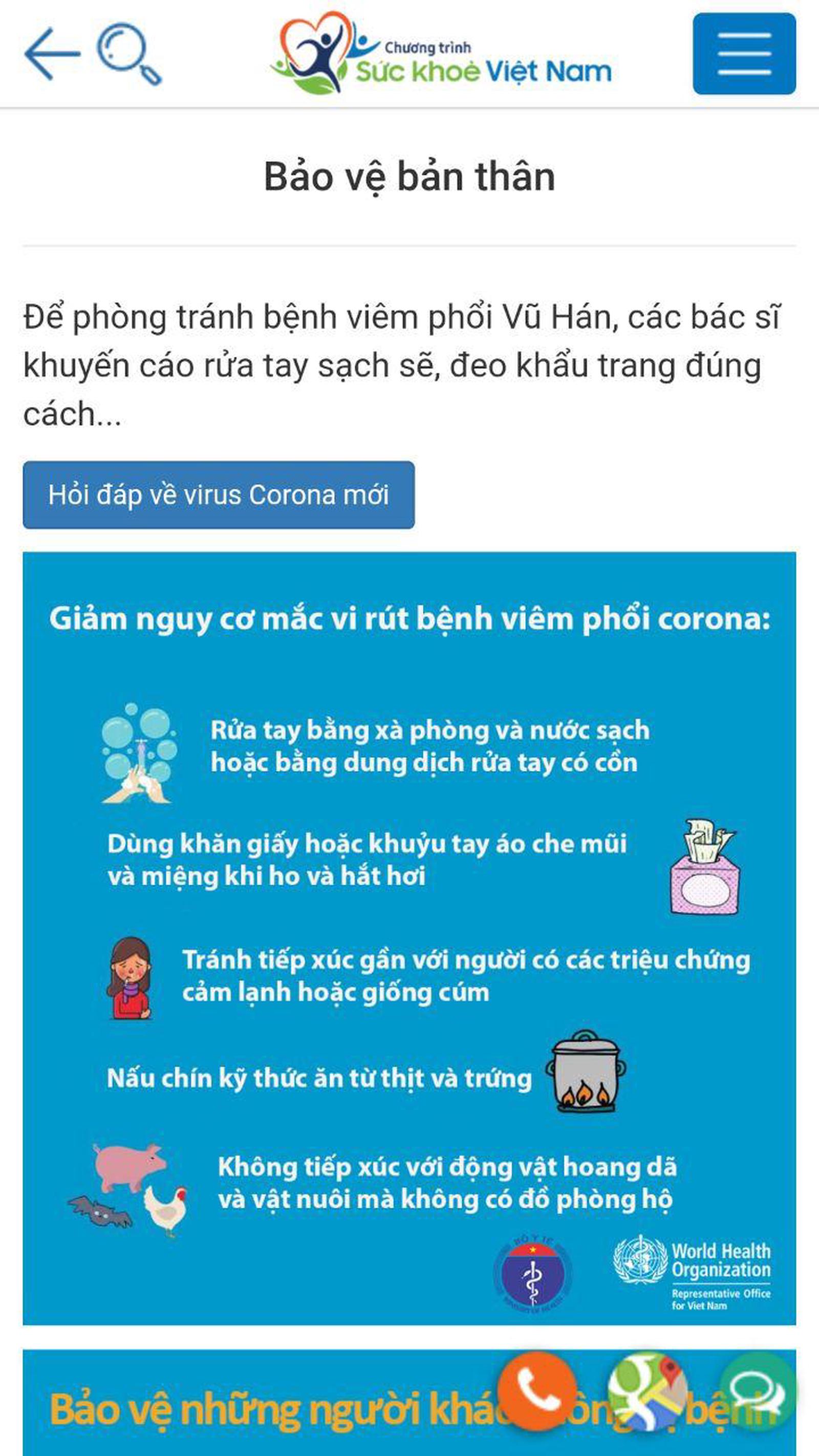 Một trong các giải pháp khác được Viettel gấp rút triển khai nhằm hỗ trợ phòng chống dịch bệnh do virus Corona là Ứng dụng Chatbot thông minh (Cyberbot) tích hợp vào Fanpage Sức khỏe toàn dân, cung cấp các thông tin chính thống từ Bộ Y tế theo kịch bản linh hoạt và phù hợp thực tế, hỗ trợ khách hàng cập nhật thông tin chính xác, mới nhất về dịch bệnh và biện pháp phòng dịch.