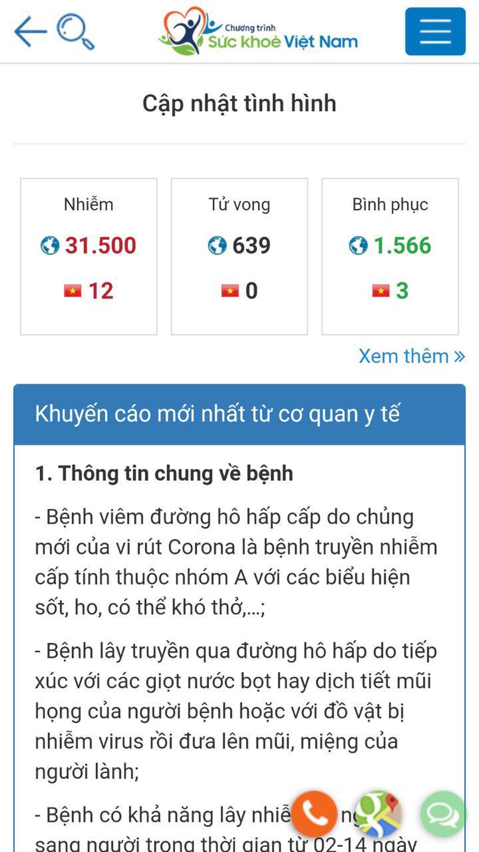 Sức khỏe Việt Nam là ứng dụng thông tin chính thức duy nhất của Bộ Y tế giúp người dân tự đánh giá về nguy cơ dịch bệnh, trang bị kiến thức phòng chống dịch bện, cập nhật thông tin tình hình dịch bệnh, . Ứng dụng này cũng là kênh để người dân tìm kiếm cơ sở y tế gần nhất để đăng ký thông tin nếu có nguy cơ lây nhiễm, hướng dẫn phương pháp cách ly và báo cáo ca bệnh nghi ngờ.
