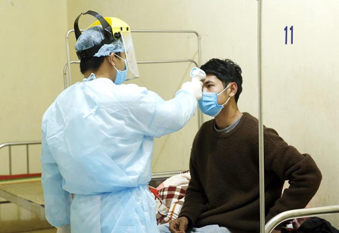Nhân viên y tế kiểm tra thân nhiệt cho các ca bệnh đang được cách ly theo dõi nCoV tại Trung tâm Y tế Bình Xuyên (ảnh chụp chiều 7/2). (Ảnh: Dương Ngọc/TTXVN)