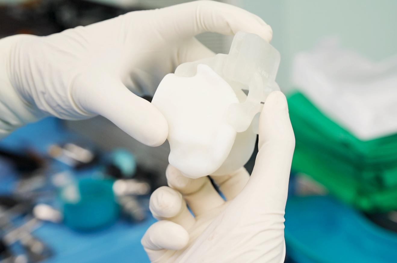 Trước phẫu thuật, mô hình khớp in 3D của bệnh nhân được ê-kíp bác sĩ thiết kế “may đo” theo dữ liệu giải phẫu của người bệnh.