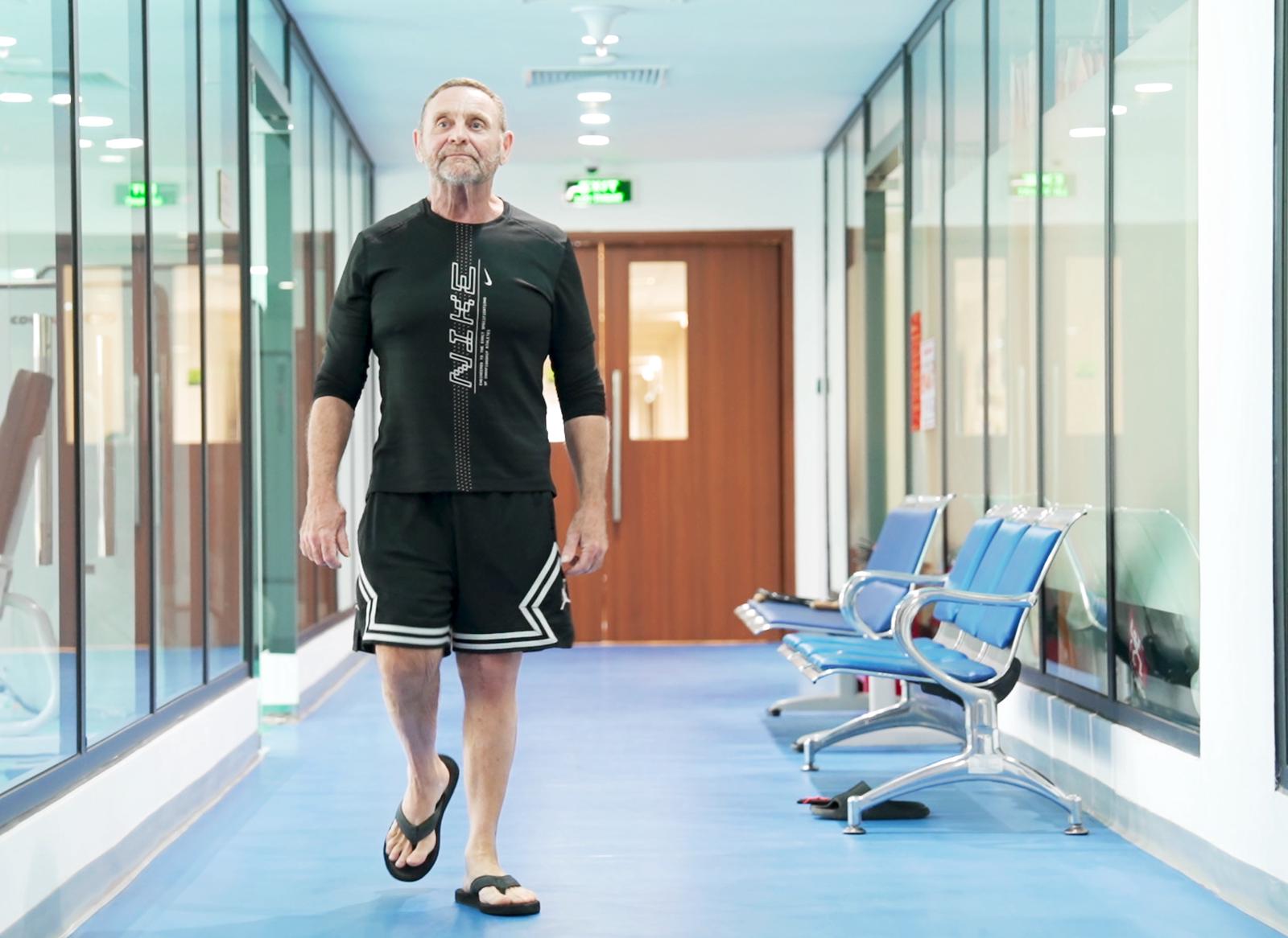 Ông Dean Garry Souter nhanh chóng đi lại vững vàng, khả năng vận động cải thiện rõ rệt sau 2 tuần phẫu thuật.
