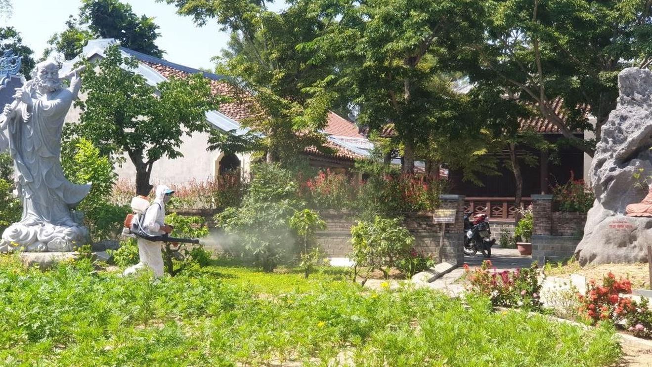 Các cơ quan chức năng phun thuốc khử khuẩn nơi bệnh nhân số 2982 lui tới. Ảnh: T.P