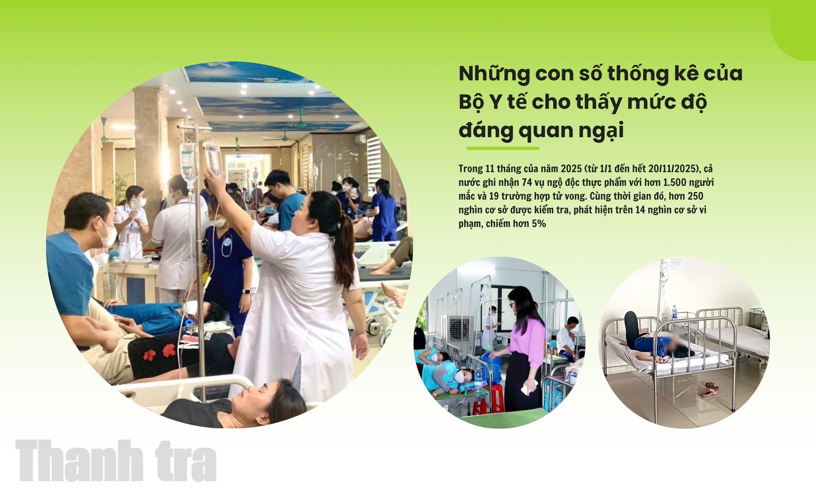 Những con số thống kê của Bộ Y tế càng cho thấy mức độ đáng quan ngại. Trong 11 tháng của năm 2025 (từ 1/1 đến hết 20/11/2025), cả nước ghi nhận 74 vụ ngộ độc thực phẩm với hơn 1.500 người mắc và 19 trường hợp tử vong. Cùng thời gian đó, hơn 250 nghìn cơ sở được kiểm tra, phát hiện trên 14 nghìn cơ sở vi phạm, chiếm hơn 5%.