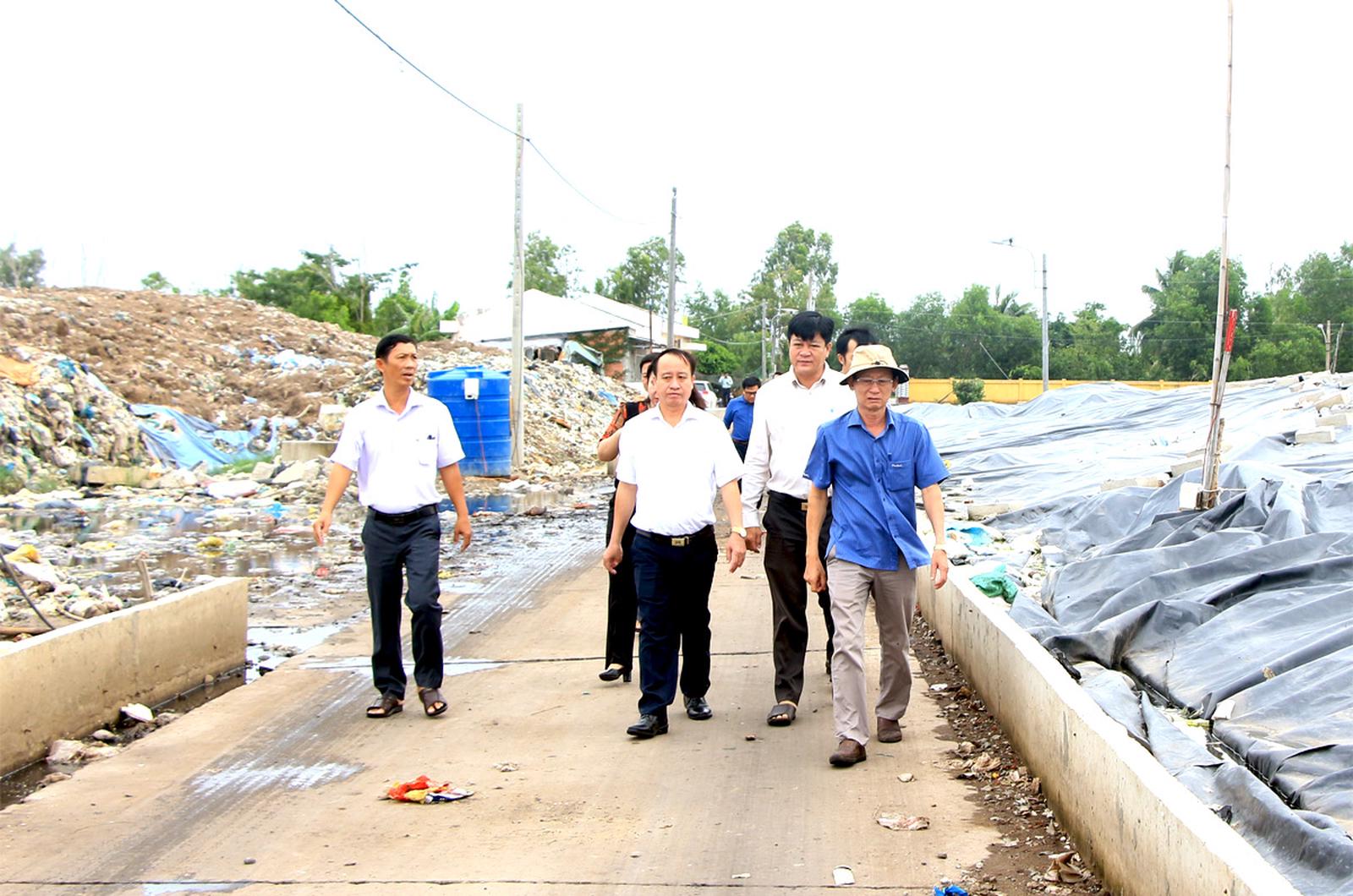 Phó Chủ tịch UBND tỉnh và các sở, ngành liên quan kiểm tra trực tiếp tại bãi rác An Hiệp (Ảnh: CTTĐT.BT)